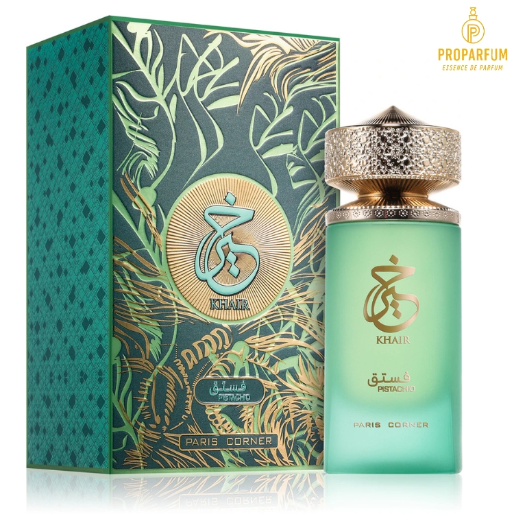 Khair Pistachio développe une note de pistache fondante, associée à une vanille onctueuse et des muscs crémeux. L’ensemble donne une impression de dessert oriental chic, avec une belle rondeur en fond. C’est une fragrance idéale pour les fans de gourmands originaux.